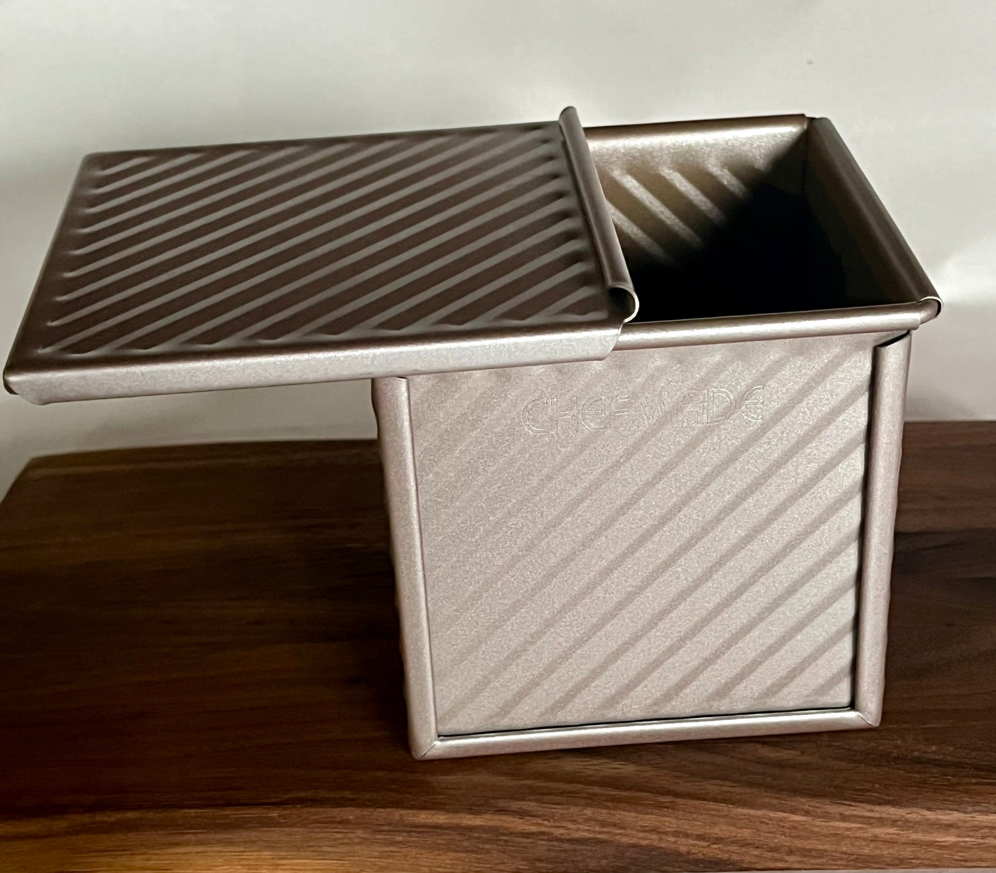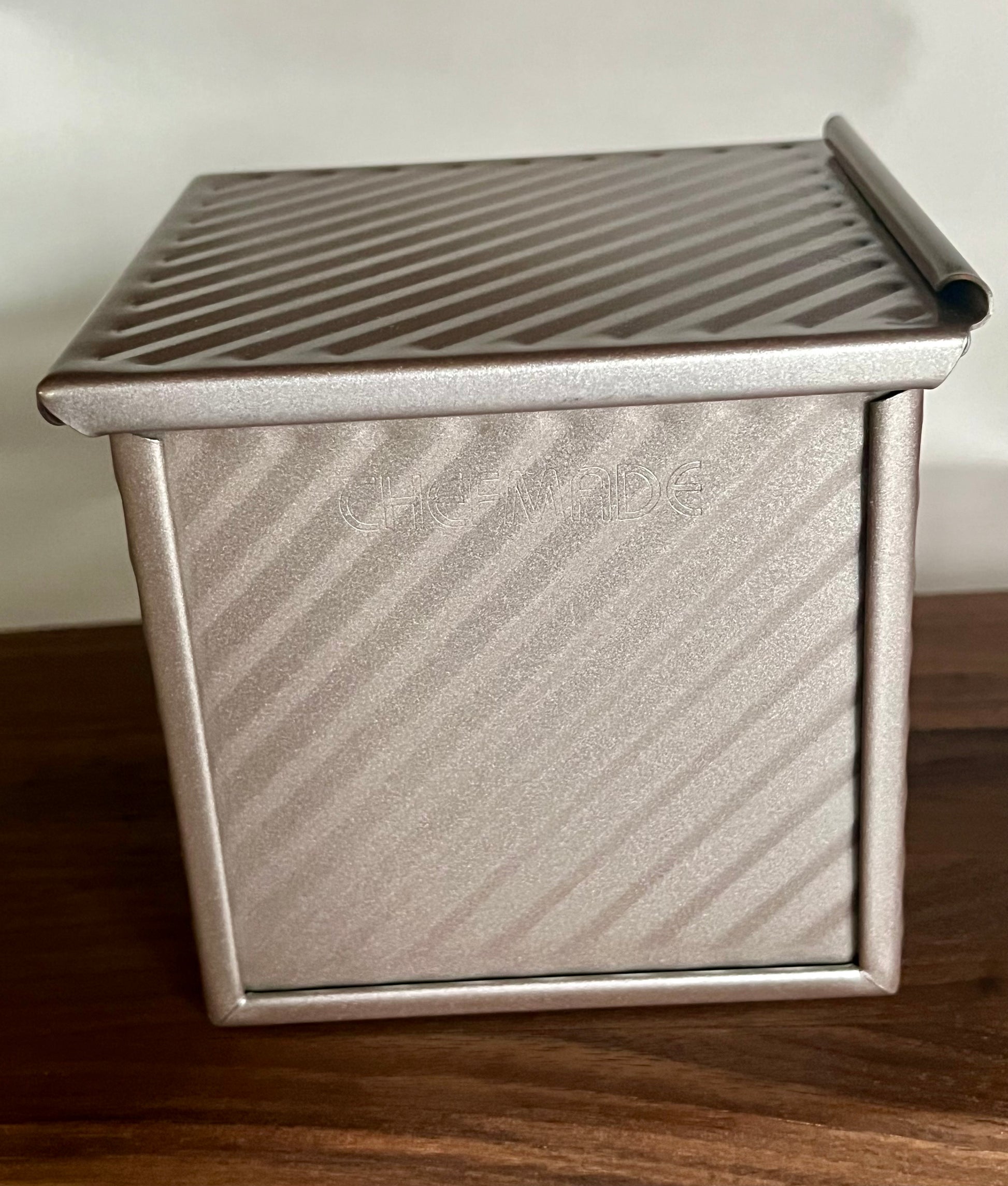 With external dimensions of 3.9" x 3.9" x 4.1" (10cm x 10cm x 10.4cm), this pan is ideal for creating beautifully square mini loaves, perfectly sized for single servings, afternoon tea sandwiches, or charming gift-sized bakes. It’s also the perfect size to hold the Baby Master Recipe (300g flour Bakers Ratio), ensuring a consistent and delightful bake every time.